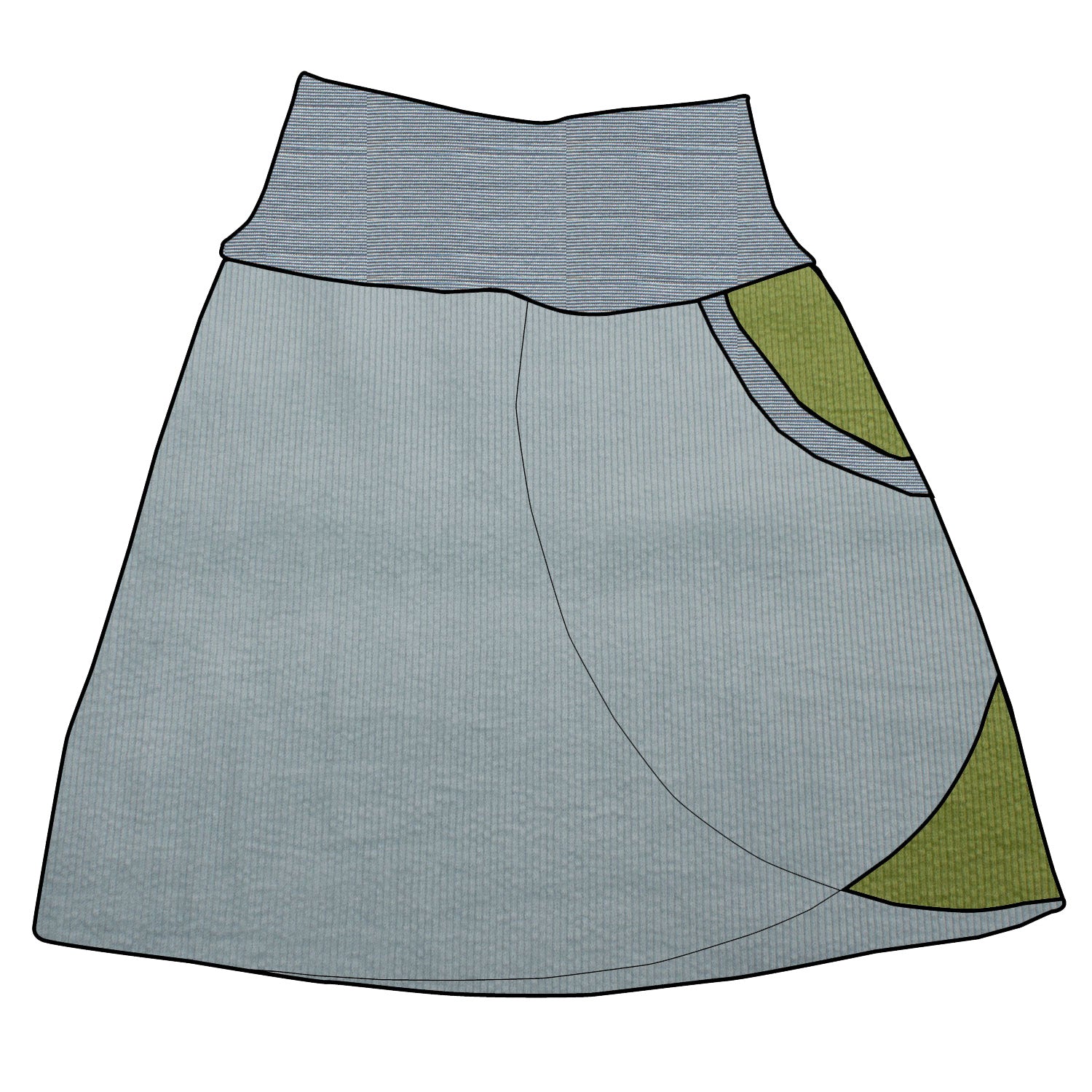 Mia liebte es, ihren Rock individuell zu gestalten. Die Taschenseite konnte sie in ihrer Lieblingsfarbe wählen, und der Stretchcord sorgte für Bewegungsfreiheit beim Spielen im Freien.
