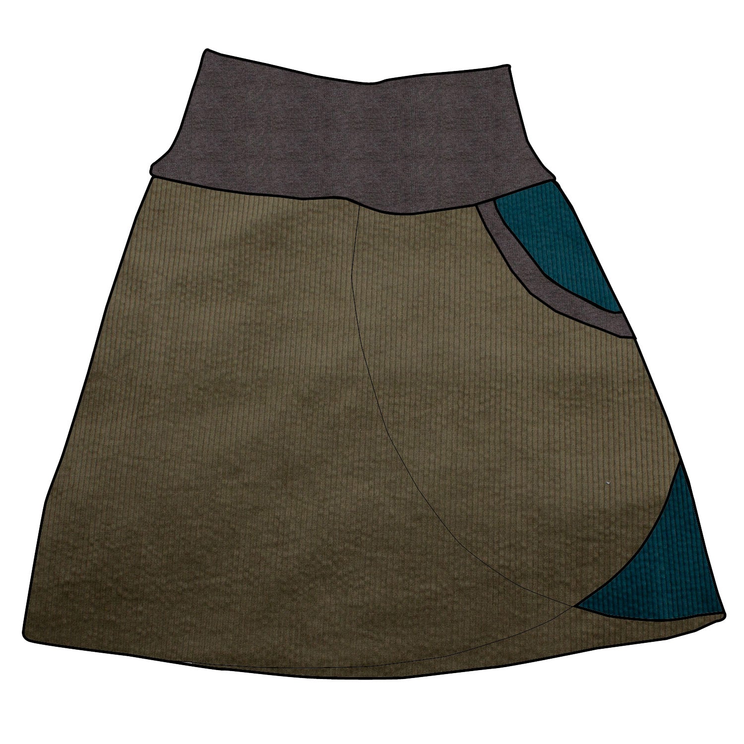Kinder Cordrock / falscher Wickelrock Cord Khaki / Petrol