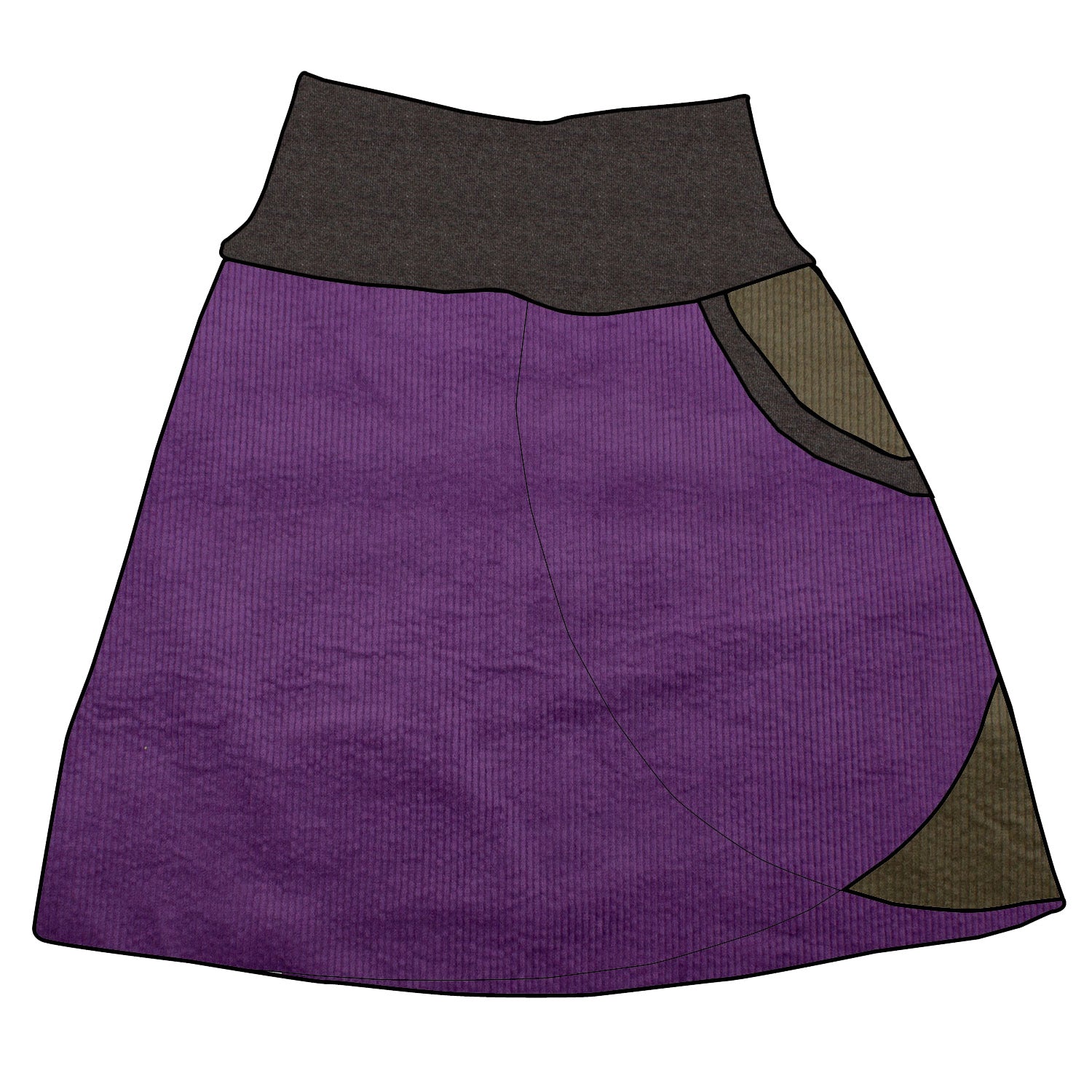 Kinder Cordrock / falscher Wickelrock Cord Lila / Khaki