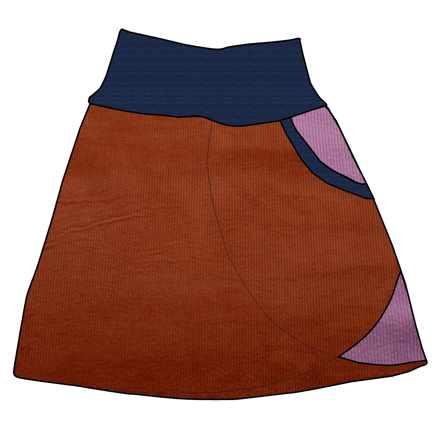 Kinder Cordrock / falscher Wickelrock Cord Rostrot / Flieder