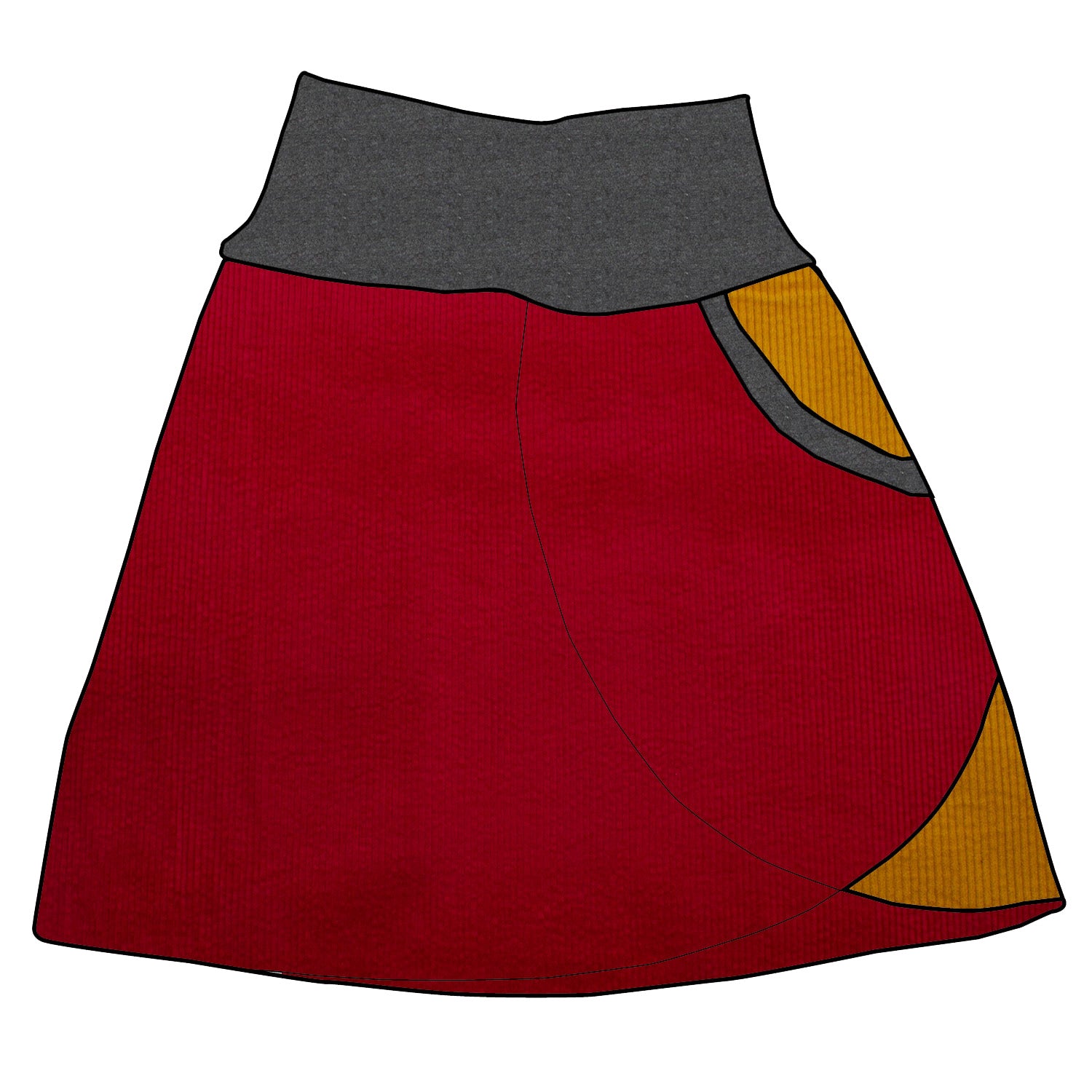 Kinder Cordrock / falscher Wickelrock Cord Rot / Senf