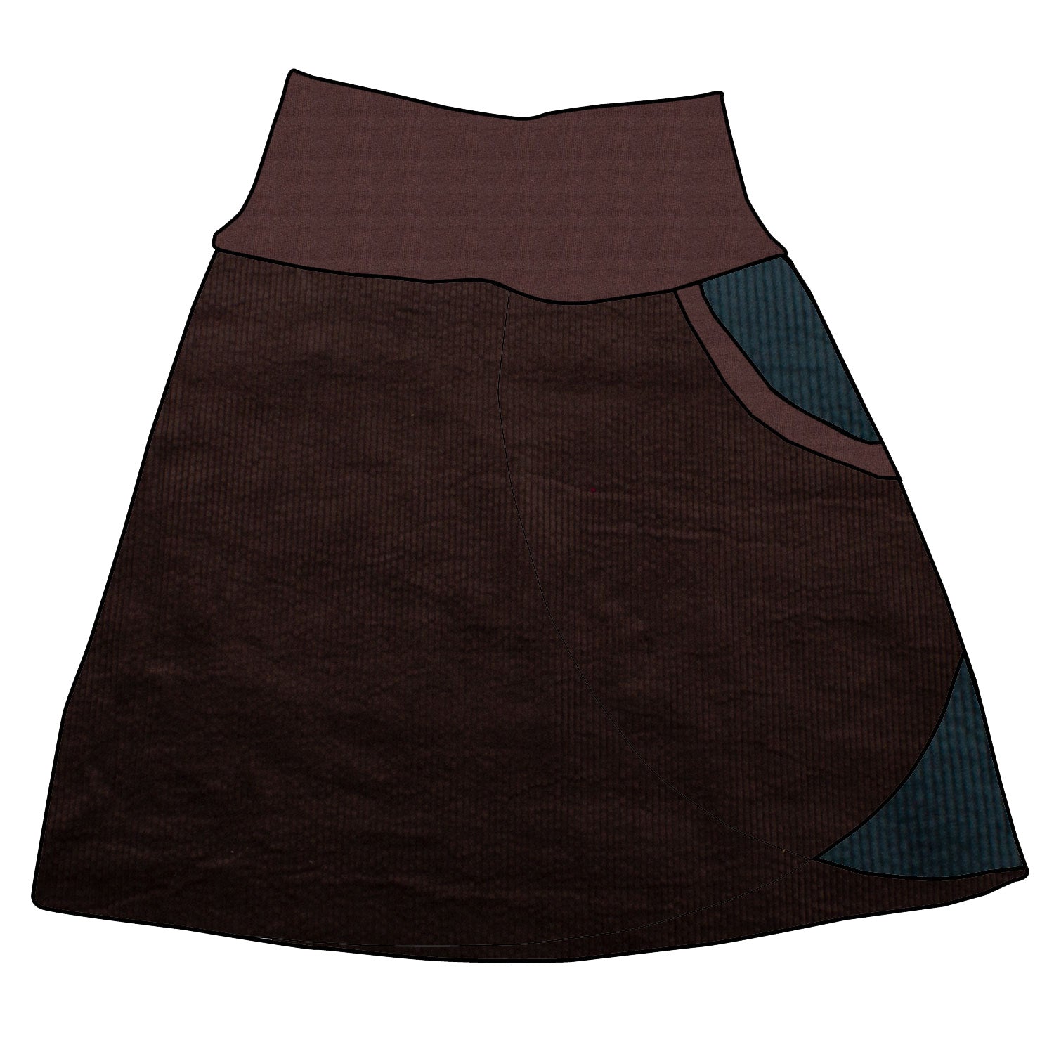 Kinder Cordrock / falscher Wickelrock Cord Schokobraun / Dunkelpetrol