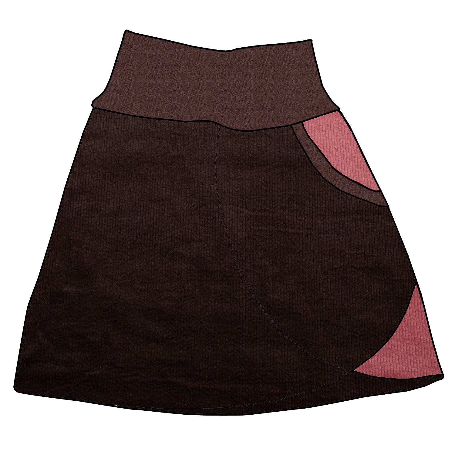 Kinder Cordrock / falscher Wickelrock Cord Schokobraun / Rosa